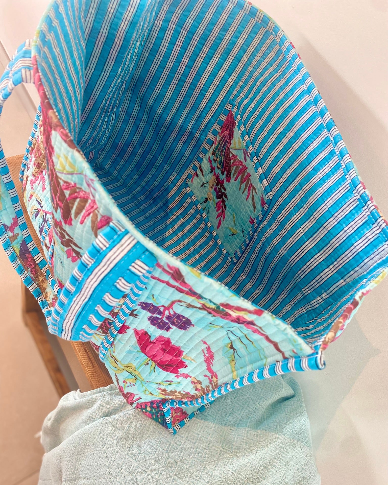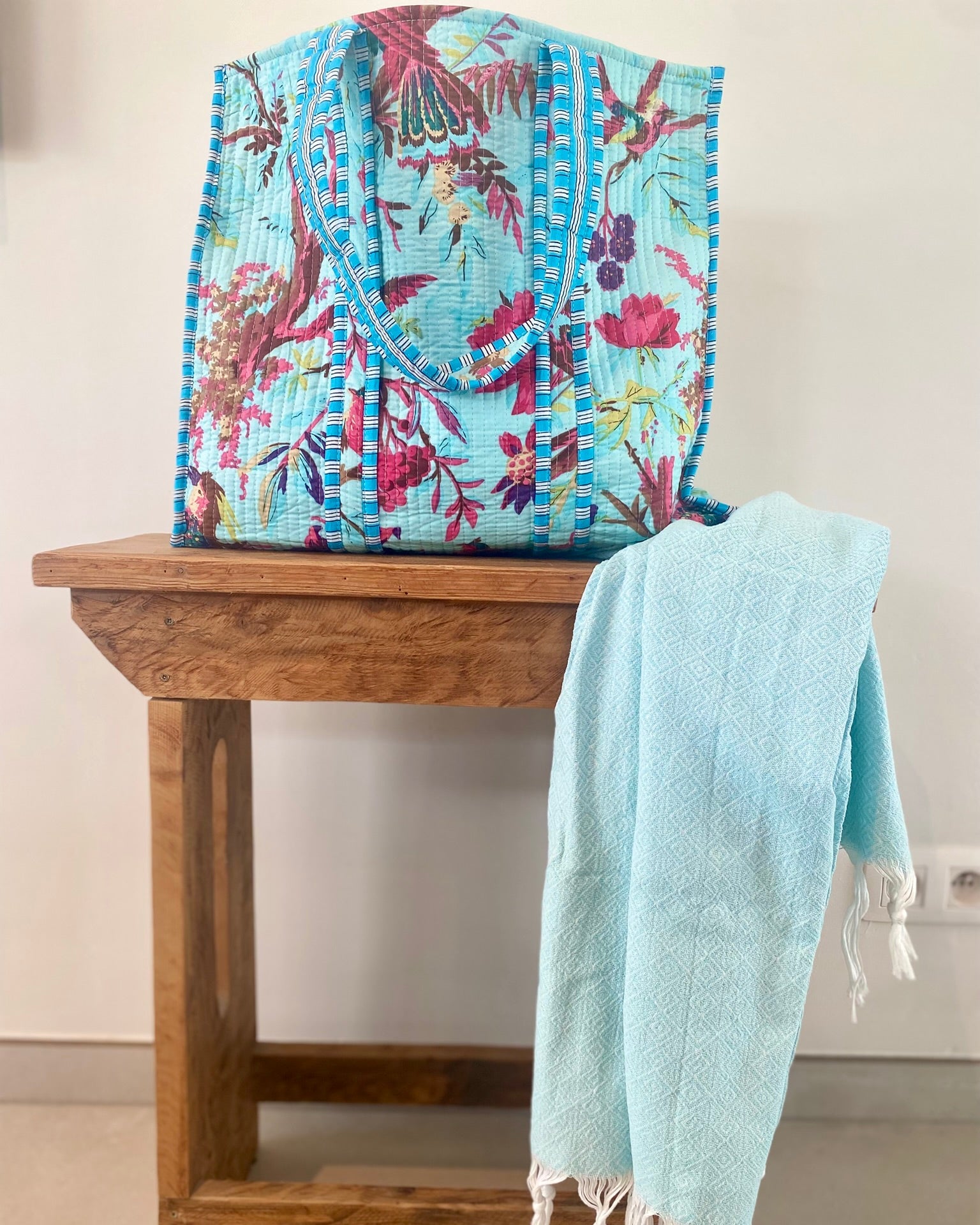 De tas is ook omkeerbaar te dragen, waardoor je in één keer kunt switchen tussen een classy look en een traditionele Indiase floral print.