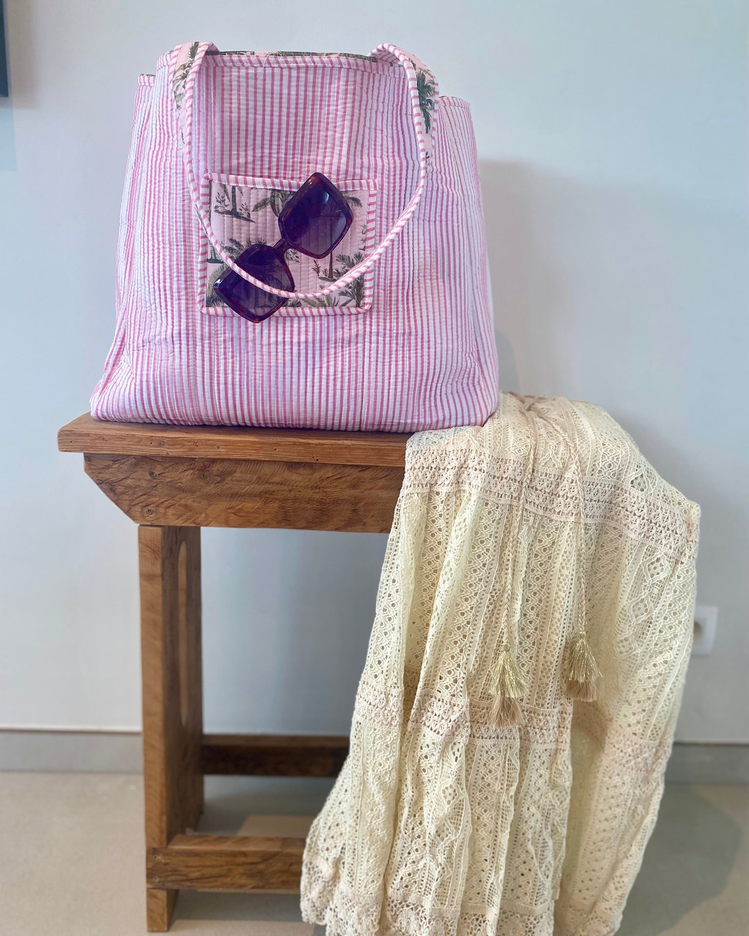 - Handig als strandtas voor je essentials en omwille van het lichte gewicht ook makkelijk mee te nemen in je reiskoffer