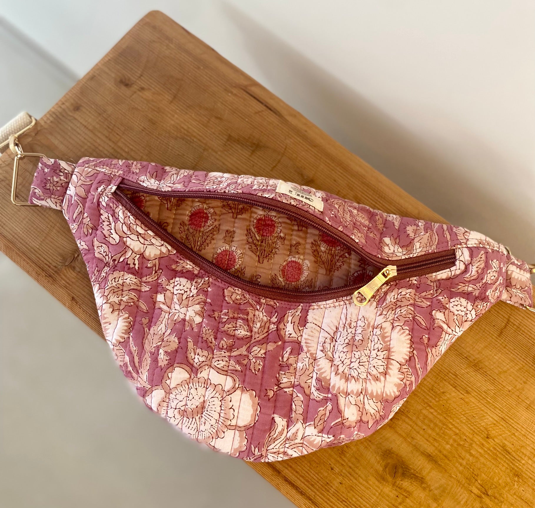 Elk product is met de hand gemaakt van 100% handbedrukte, duurzame stoffen, wat zorgt voor unieke details en kleine onregelmatigheden – juist wat jouw item bijzonder maakt.