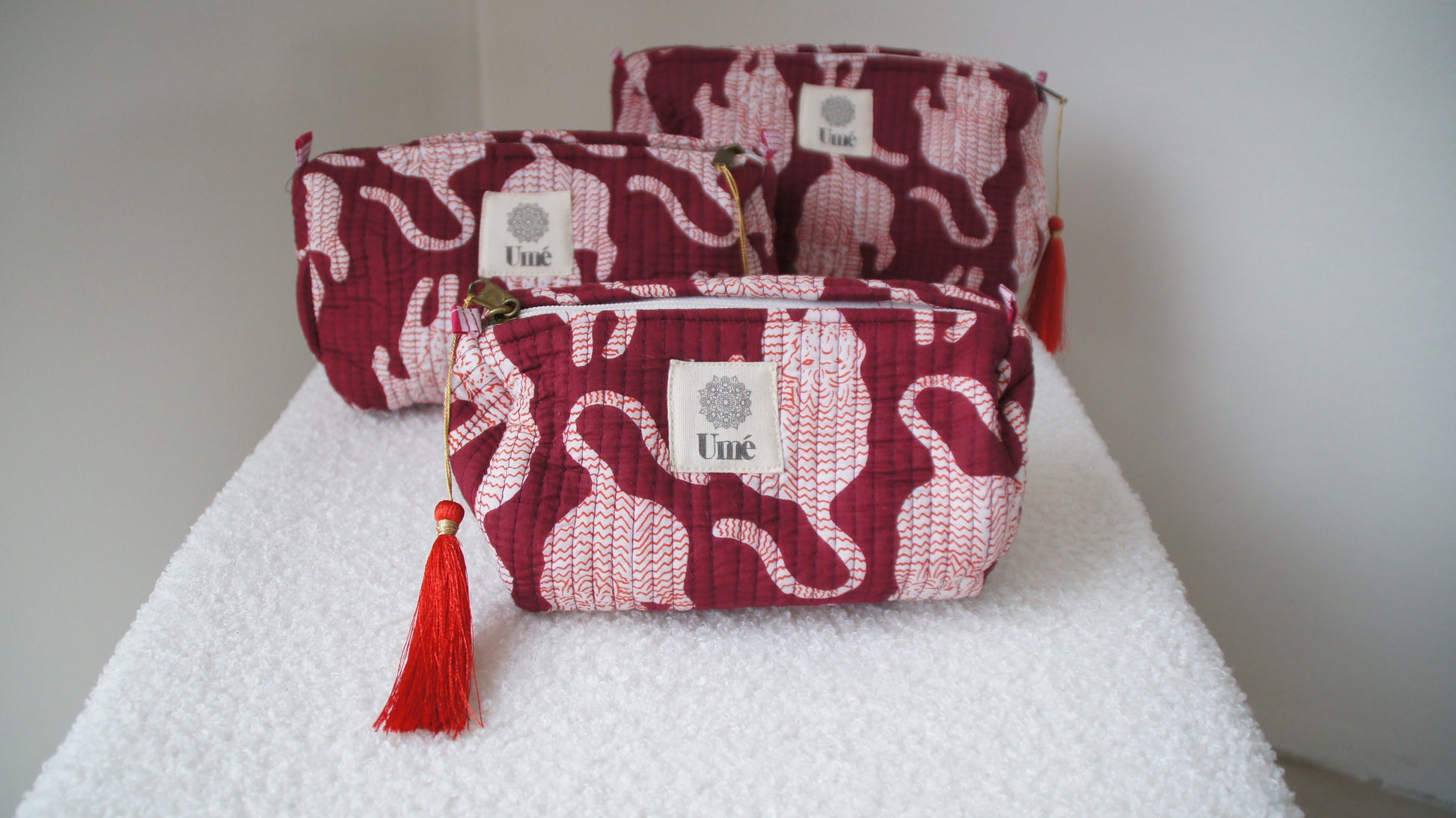 Met de hand bedrukt volgens de traditionele blockprinttechniek, is elk tasje een klein kunstwerk op zich. Verkrijgbaar in drie formaten per design – mix & match zoals jij het wilt!