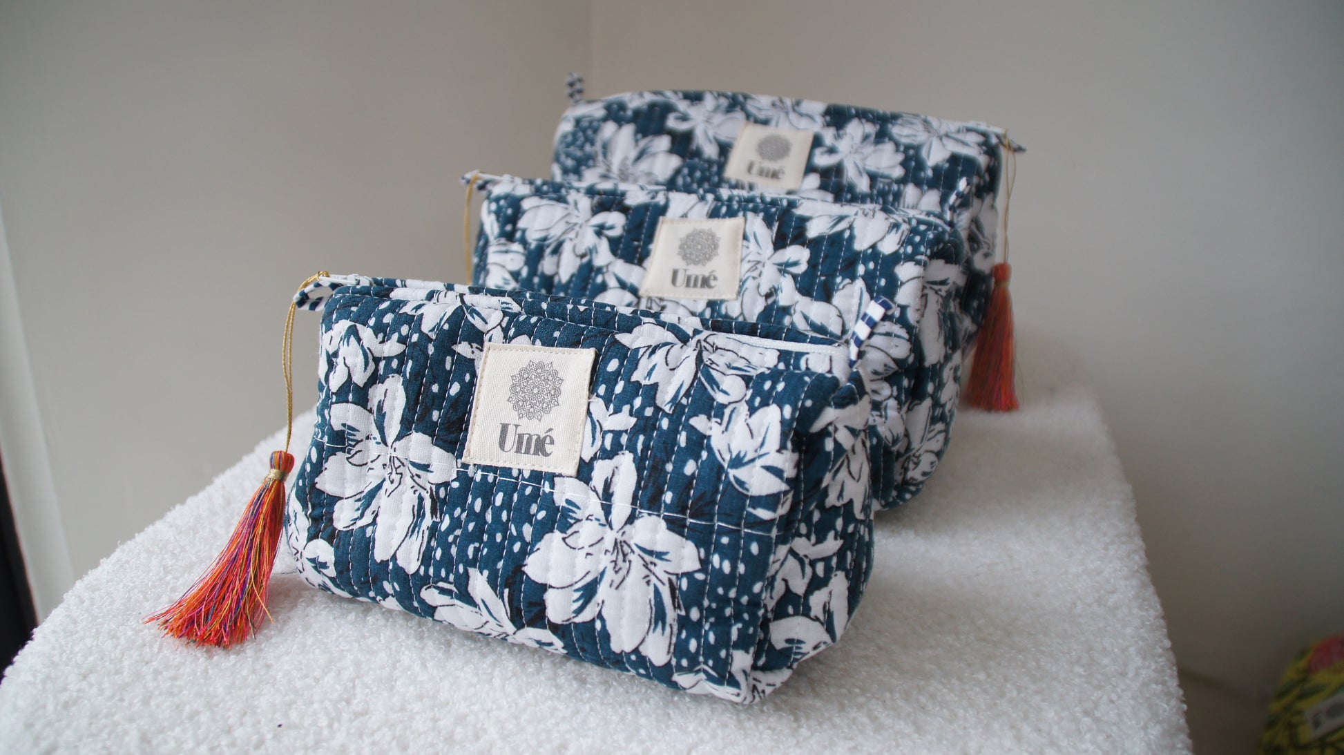 Met de hand bedrukt volgens de traditionele blockprinttechniek, is elk tasje een klein kunstwerk op zich. Verkrijgbaar in drie formaten per design – mix & match zoals jij het wilt!