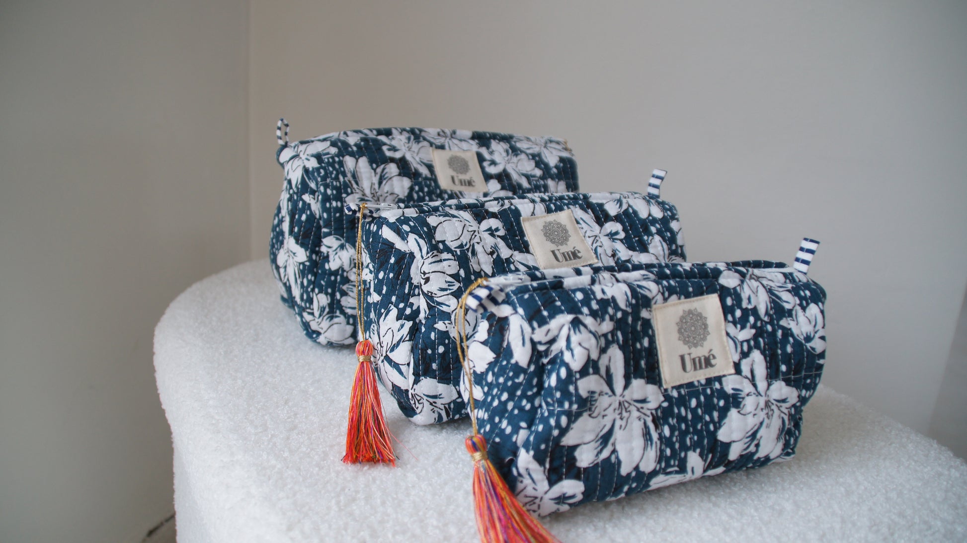 🌿 Uniek en handgemaakt – onze blockprint toilettasjes geven kleur aan je dag!