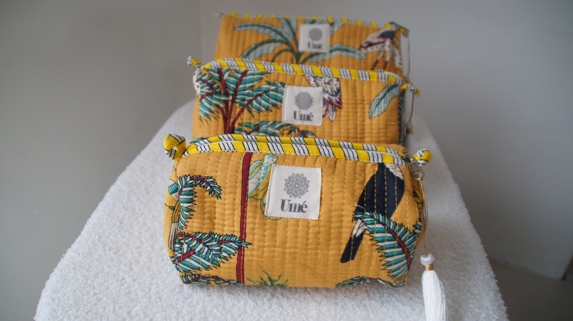 Of je nu een klein hebbeding zoekt of een praktische organizer: deze vrolijke toilettasjes combineren handwerk met gebruiksgemak.