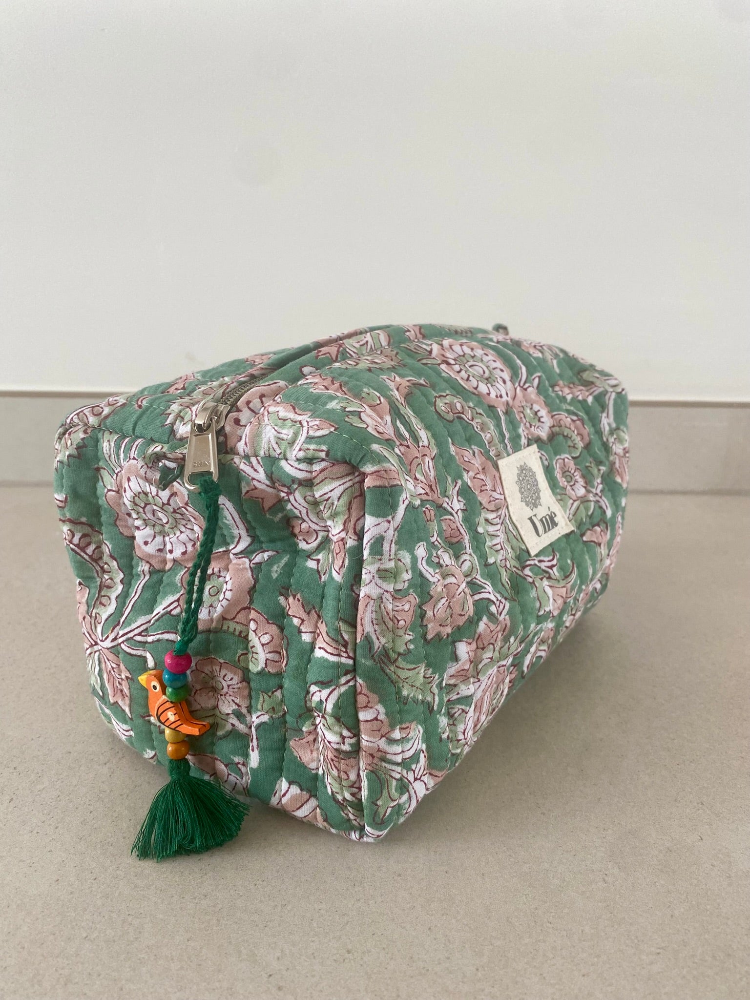 🌿 Uniek en handgemaakt – onze blockprint toilettas geeft kleur aan je dag!