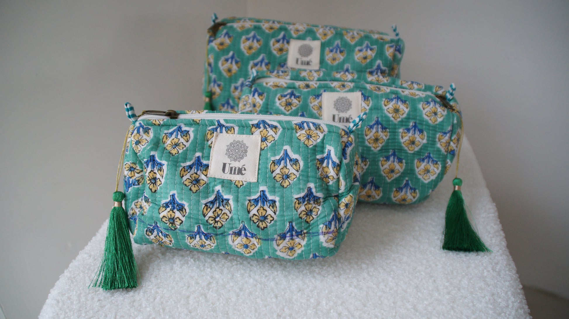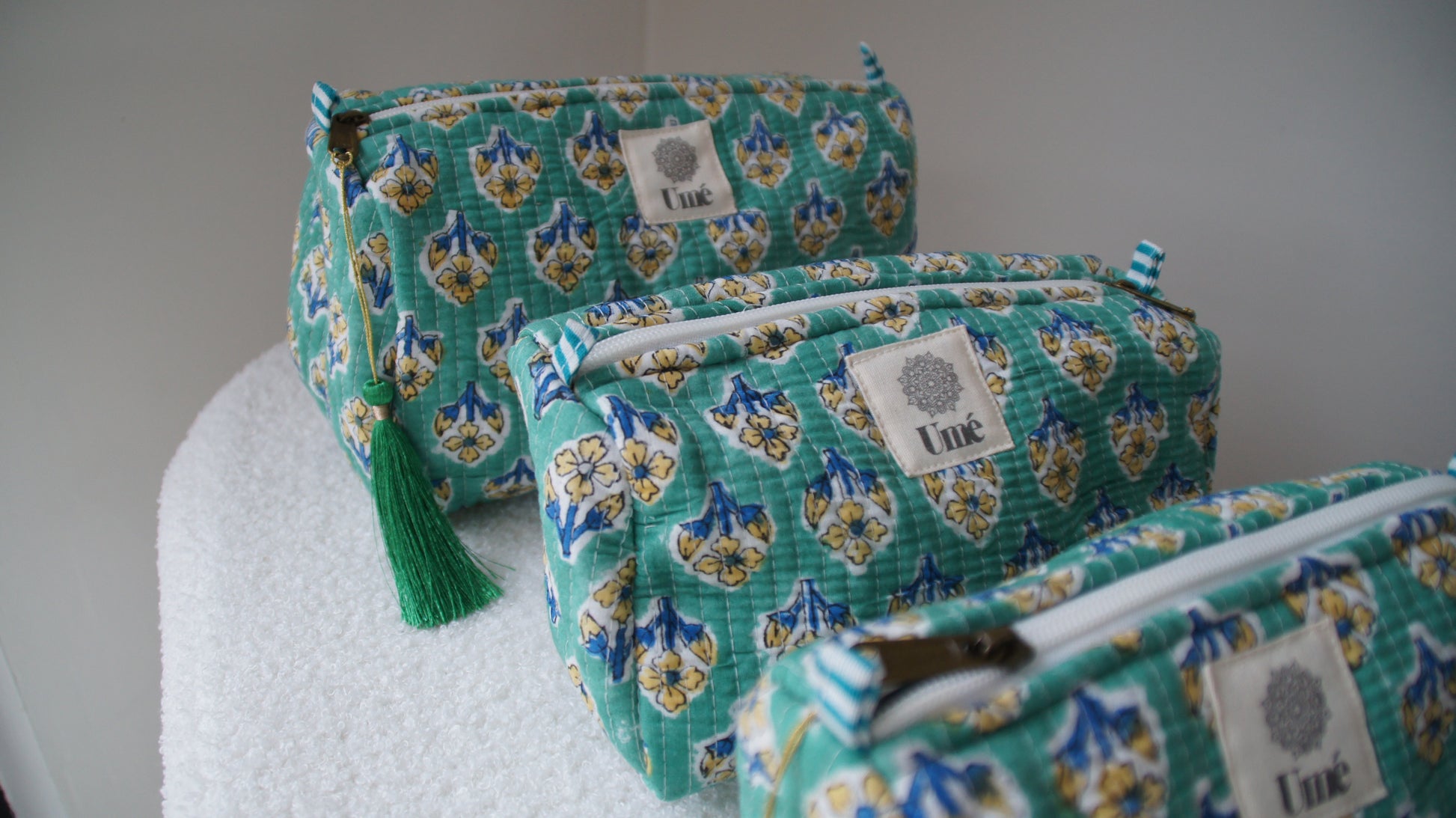 🌿 Uniek en handgemaakt – onze blockprint toilettasjes geven kleur aan je dag!