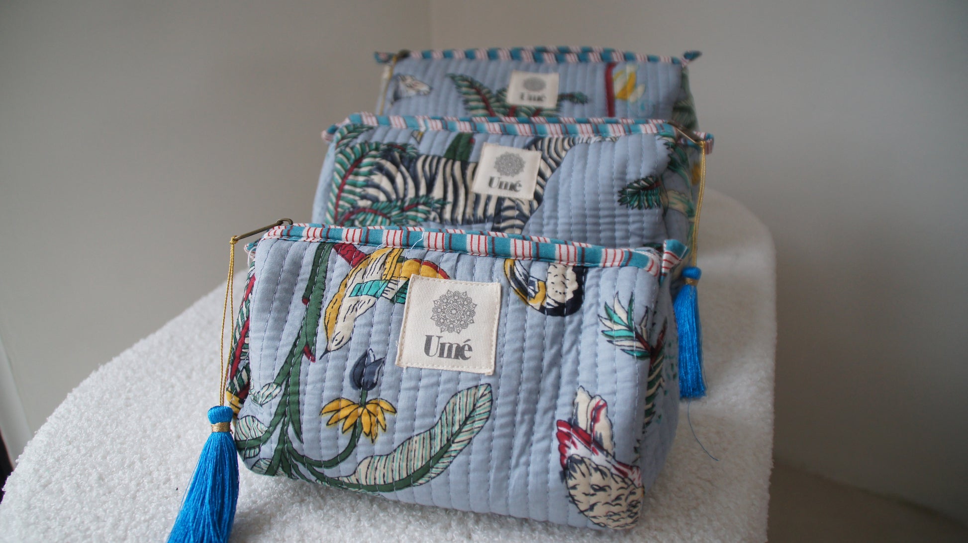 Met de hand bedrukt volgens de traditionele blockprinttechniek, is elk tasje een klein kunstwerk op zich. Verkrijgbaar in drie formaten per design – mix & match zoals jij het wilt!