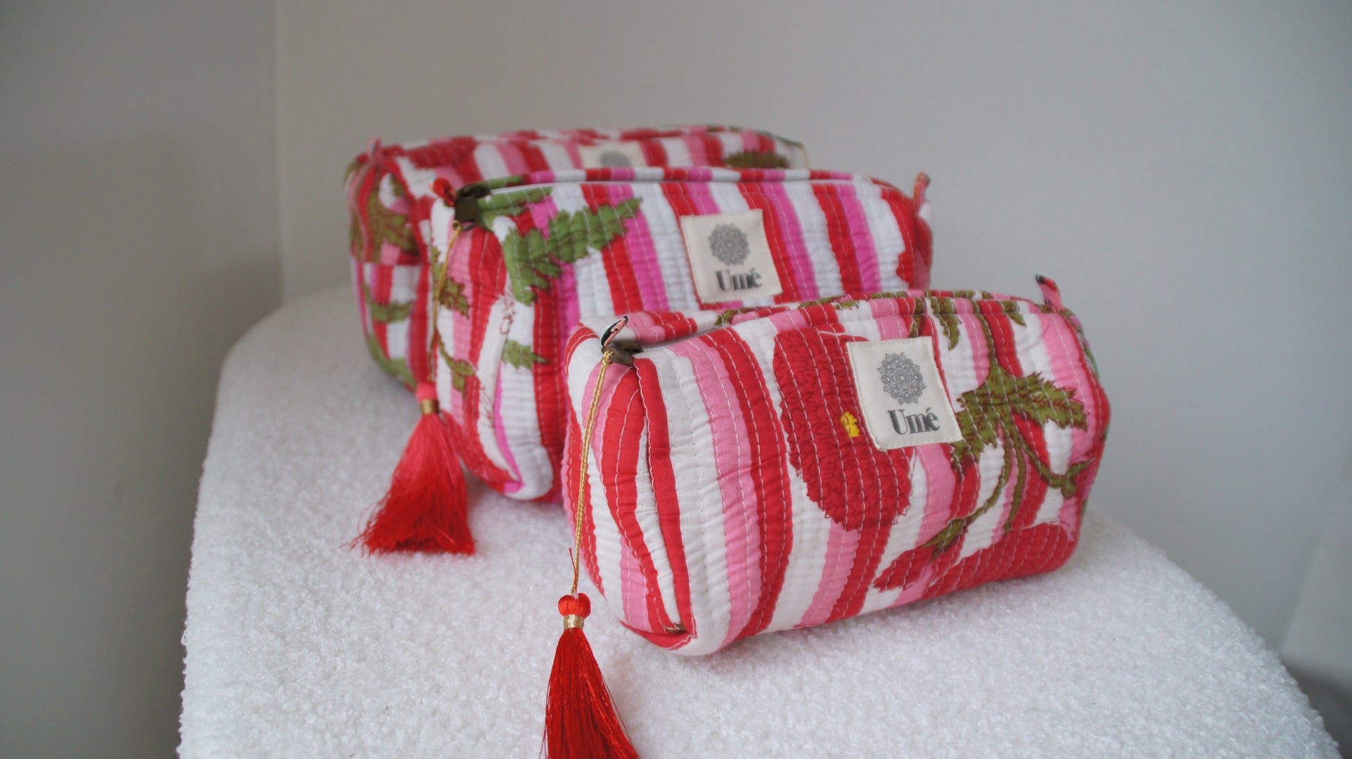🌿 Uniek en handgemaakt – onze blockprint toilettasjes geven kleur aan je dag!