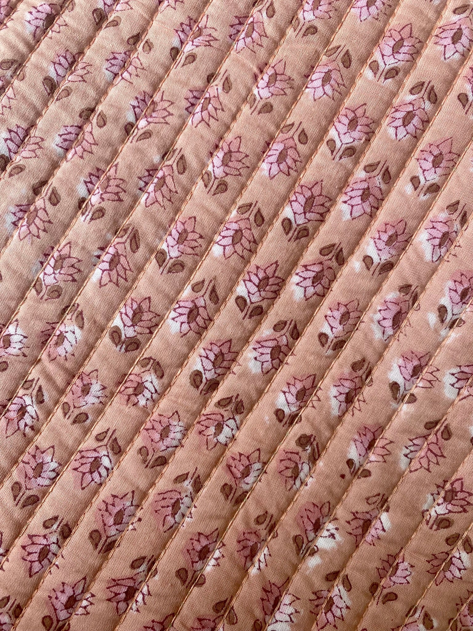 De stoffen worden stuk voor stuk op geprint door vakmensen, met een eeuwenoude techniek: hand block printing. Daarbij worden houten stempels met de hand gesneden, in natuurlijke verf gedoopt en laag voor laag op de stof gedrukt.