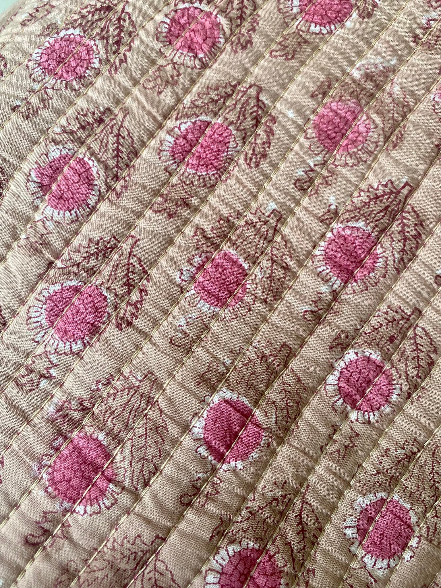 De stoffen worden stuk voor stuk op geprint door vakmensen, met een eeuwenoude techniek: hand block printing. Daarbij worden houten stempels met de hand gesneden, in natuurlijke verf gedoopt en laag voor laag op de stof gedrukt.